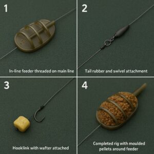 Construction Process: Start by sliding an in-line flatbed feeder (30-60g depending on casting distance) onto your main line. Add a tail rubber sleeve and size-8 quick-change swivel for easy hooklink swaps. Clip on a 10cm supple braid hair-link armed with an 8-10mm wafter that perfectly balances just off the bottom.